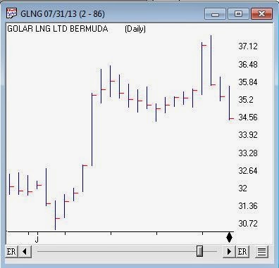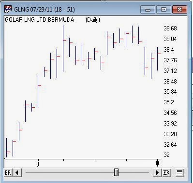 Figure 3 is a chart of GLNG seasonal pattern for the last 7 years in July. The solid black line is the average for the 7 years, these are percentage change day to day. Each line represents a prior year of GLNG.
