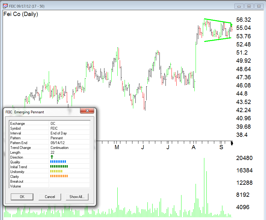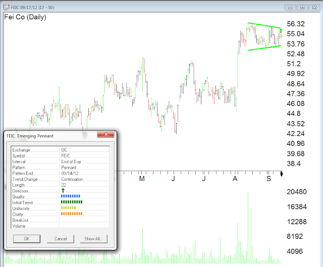 Couple of chart patterns appeared in the Chart Pattern EDS report for 9-17-2012.