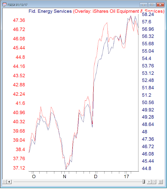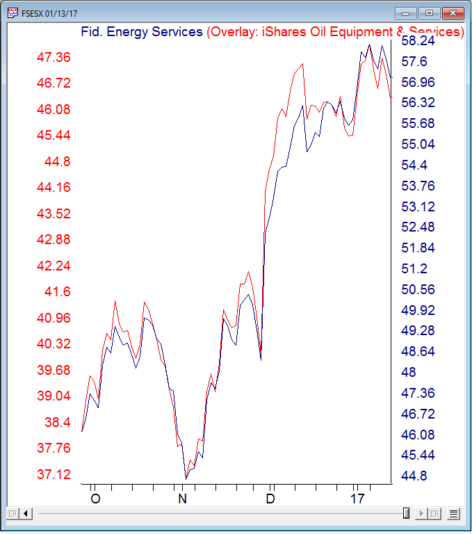Here’s a WinWay overlay chart of recent daily price action comparing FSESX vs IEZ.