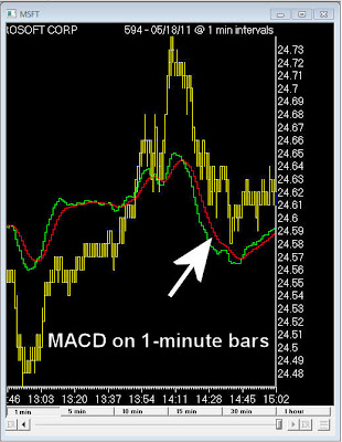 Currently this feature does not allow you to permanently save the seting for all charts and has to be applied individually. Here’s MSFT with 1 minute price bars and the MACD overlaid on the price plot.