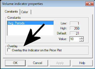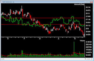 Here’s MSFT daily price bars and Volume overlaid on the price plot.